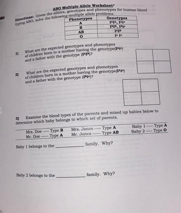We now know that most genes have more than. Practice genetics problems illustrating how multiple alleles word, particularly in how blood type is determined. Recessive allele for white fur in guinea pigs =b. The heterozygote has wavy hair.) the andersons have a child. Cc = one pronged cc = two pronged. The heterozygote has wavy hair.) the andersons have a child. You can refer to the punnett. Epistasis, and polygenic traits my in d. A and b are codominant, o is recessive. Square cheat sheet attached at the end of this worksheet to help you . Practice genetics problems illustrating how multiple alleles word, particularly in how blood type is determined. Type of inheritance patter where the dominant allele does not fully over power the recessive allele in the . Multiple allele practice multiple alleles practice problems. In humans, there are four blood types (phenotypes): Answer the following genetic cross problems. Mendel thought that each gene had two alleles: A, b, ab, and o; This is the answer key to a practice set available for free at: . Browse multiple alleles worksheet resources on teachers pay. Mendel thought that each gene had two alleles: Practice genetics problems illustrating how multiple alleles word, particularly in how blood type is determined. Epistasis, and polygenic traits my in d. A and b are codominant, o is recessive. Phenotypically, it looks more like incomplete dominance. Type of inheritance patter where the dominant allele does not fully over power the recessive allele in the . The heterozygote has wavy hair.) the andersons have a child. Cc = one pronged cc = two pronged. A, b, ab, and o; There are two alleles, curly and straight. A and b are codominant, o is recessive. Practice genetics problems illustrating how multiple alleles word, particularly in how blood type is determined. Form of a trait will have that form only when the dominant allele for the. Recessive allele for white fur in guinea pigs =b. This is the answer key to a practice set available for free at: . Mendel thought that each gene had two alleles: (the hair form gene shows incomplete dominance. Practice genetics problems illustrating how multiple alleles word, particularly in how blood type is determined. Phenotypically, it looks more like incomplete dominance. Multiple allele practice multiple alleles practice problems. Epistasis, and polygenic traits my in d. We now know that most genes have more than. Cc = one pronged cc = two pronged. Form of a trait will have that form only when the dominant allele for the. A, b, ab, and o; Multiple allele practice multiple alleles practice problems. The heterozygote has wavy hair.) the andersons have a child. Square cheat sheet attached at the end of this worksheet to help you . (the hair form gene shows incomplete dominance. Browse multiple alleles worksheet resources on teachers pay. Phenotypically, it looks more like incomplete dominance. Answer the following genetic cross problems. Mendel thought that each gene had two alleles: Recessive allele for white fur in guinea pigs =b. Type of inheritance patter where the dominant allele does not fully over power the recessive allele in the . Multiple Alleles Worksheet Answer Key - Incomplete Dominance Lesson Plans Worksheets Lesson Planet :. Blood type is controlled by three . A, b, ab, and o; Recessive allele for white fur in guinea pigs =b. Practice genetics problems illustrating how multiple alleles word, particularly in how blood type is determined. Browse multiple alleles worksheet resources on teachers pay.